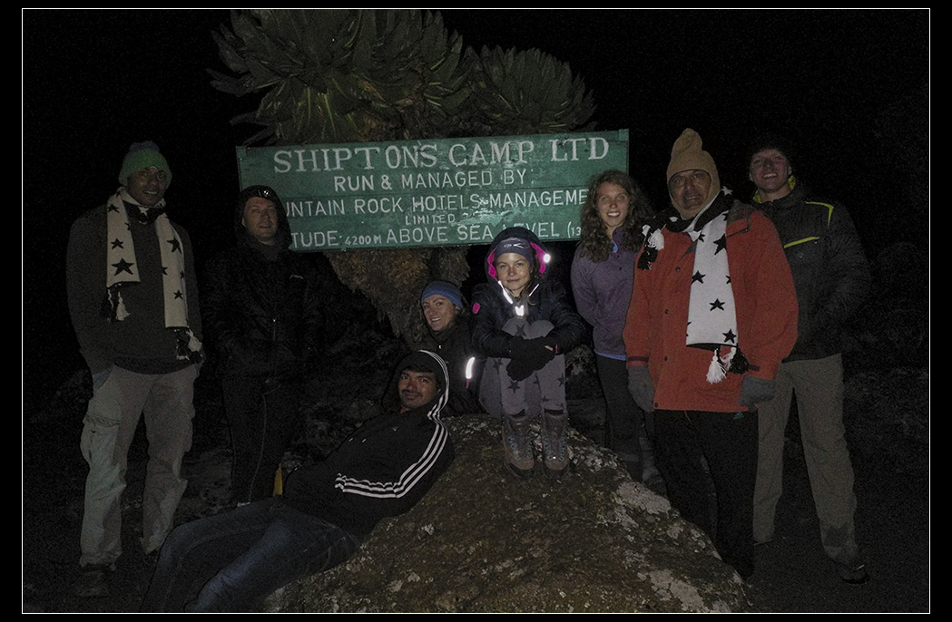 Mount Kenya has many peaks. The highest is Batian - 5199m. Not possible to hike - only technical climbing - so not for us. But we saw it! Point Lenana on the left - our target for next day.